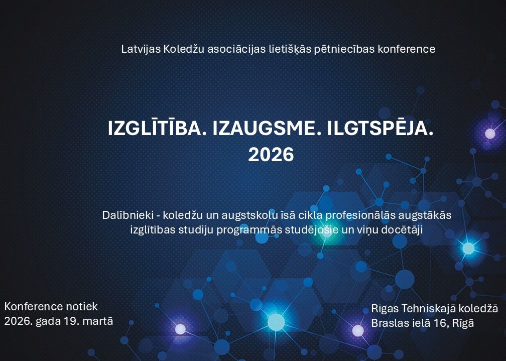Latvijas Koledžu asociācijas lietišķās pētniecības konference "Izglītība. Izaugsme. Ikgtspēja. 2026"