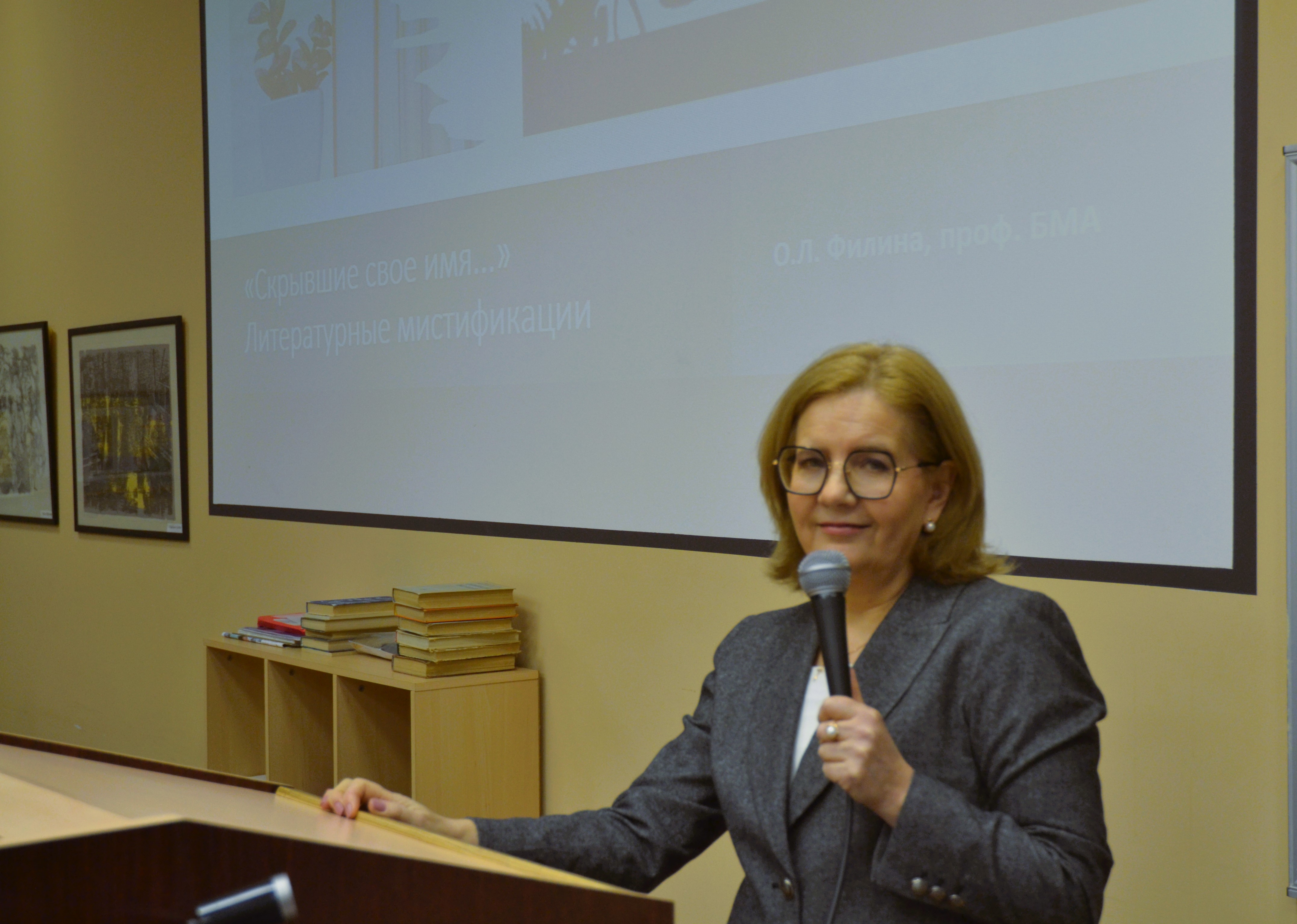 Тему самозванства в истории продолжила 21.02. 2024 лекция профессора БМА О.Л. Филиной «Скрывшие свое имя. Мистификации в литературе». Слушатели с интересом порассуждали вместе с лектором о причинах, по которым писатели стремятся скрыть свои настоящие имена и выбирают псевдонимы. Представители старшего поколения, имеющие богатый читательский опыт, получили возможность взглянуть на хорошо знакомые литературные произведения и их авторов с непривычной точки зрения.